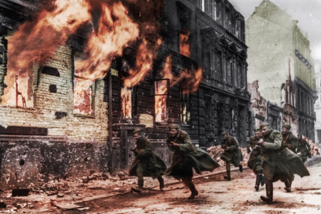Efter slaget vid Seelowhöjderna och övergången av floden Oder stod vägen till Berlin öppen för Röda armén. 1. Vitryska fronten ledd av Georgij Zjukov trängde fram österifrån mot staden. 1. Ukrainska fronten, under ledning av Ivan Konjev, slår sig fram från söder och sydväst. 2. Vitryska fronten, under Konstantin Rokossovskij rycker fram norrifrån. Berlin är så gott som omringat och gatorna i Tredje rikets huvudstad förvandlas till ett brinnande slagfält.